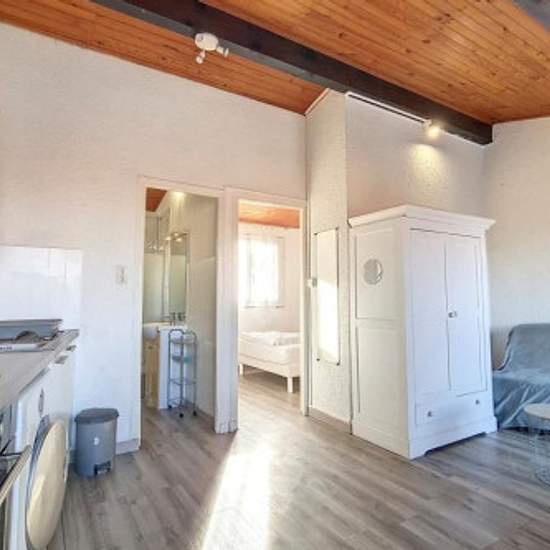 Cet appartement de type F2 de 29.95 m², se situe sur la commune d'Agosta Plage, dans une résidence composée essentiellement de marinas à 2 mn de la plage, et à 5 mn de Porticcio. Il bénéficie d'une belle terrasse de 16.46m² exposée à l'est et d'une cour de 14.23 m² à l'ouest. Parfaitement au calme, son état général est correct. Les places de stationnement sont libres. LES PRESTATIONS DU F2 AGOSTA : Poutres apparentes Persiennes alu Lambris bois au plafond Simple vitrage Vasque avec miroir Cumulus Terrasse carrelée avec tuyau arrosage Crépi F...