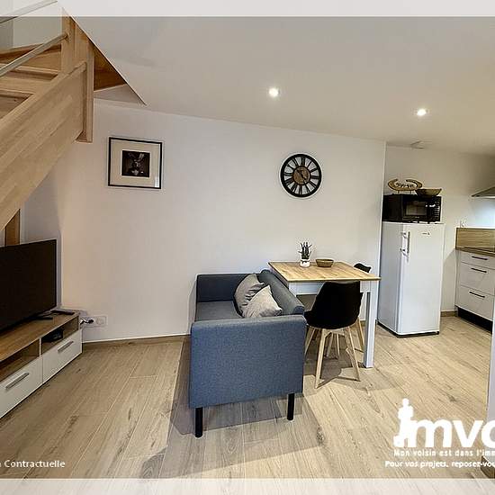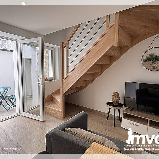 - AU COEUR DU VIEUX CENTRE D'ANCENIS - Venez découvrir ce bel appartement entièrement rénové et meublé offrant au rez-de-chaussée une pièce de vie optimisée avec un espace salon et repas avec une cuisine aménagée et entièrement équipée, WC indépendant avec coin machine à laver. A l'étage, vous disposez d'une belle chambre lumineuse avec salle d'eau. Le bien se complète avec une petite cour privative. Provision sur charges 5 euros/mois (électricité des parties communes). Disponible au 26 décembre 2025. - MEUBLÉ AVEC GOÛT - Les informations su...
