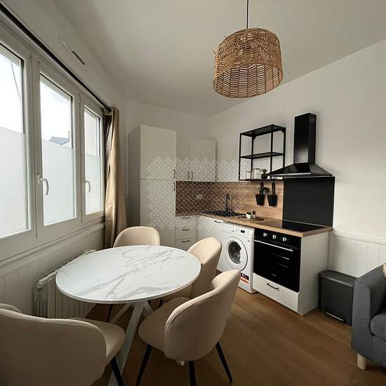 Two-room apartment 30 m² For rent, furnished T2 of 30.46 m², Mail neighborhood. Available immediately. The recently renovated apartment comprises: a fitted and equipped kitchen (washing machine, microwave, refrigerator...), a living room/lounge, a bedroom with shower room, separate WC, a communal garden. Ideally located on Rue de la Devansaye, shops nearby (bar, tobacconist, restaurant, small supermarket...). Bus and tram lines a few minutes' walk away. Additional information: Lease duration one year, automatically renewable. Financial detai...