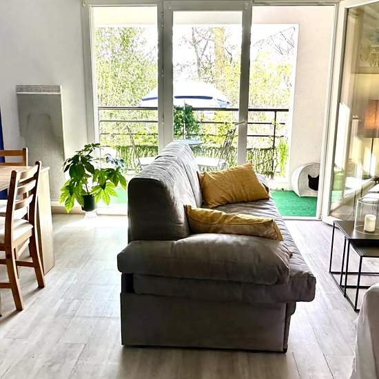 Nice two-room (T2) partly furnished apartment in a recent residence with elevator comprising: an entrance, a fitted and equipped kitchen open to a living room with dining area and access to a terrace, a bedroom, a shower room and a toilet. Close to all amenities. "Information on the risks to which this property is exposed is available on the Géorisques website: georisques.gouv.fr" rental terms rent excluding charges: €712.00 condominium fees: €27.00 (water included in the fees with annual adjustment) internet subscription: €45.00 rent includ...