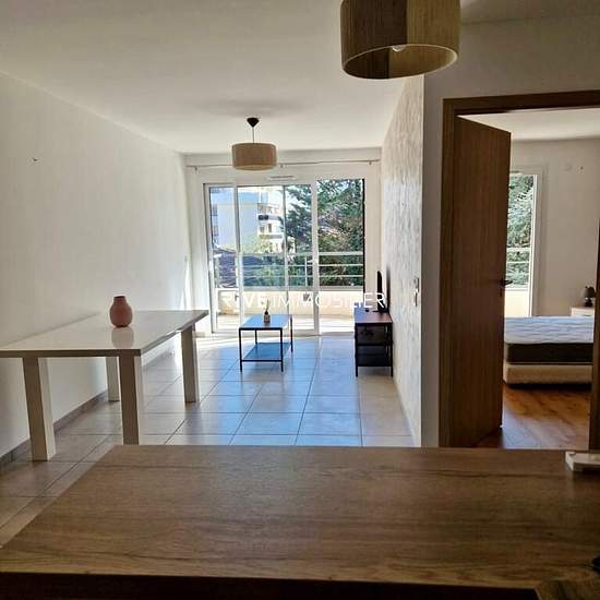 Disponible ; Adresse du bien : rue du Chateau à ANNEMASSE (74100) Un appartement de type T2, entièrement meublé et équipé, d'une superficie totale 43.24 m² et situé au 2ème étage d'une résidence récente (petite copropriété avec ascenseur, vidéophone) et comprenant : Une entrée avec placard ; Une cuisine équipée ouverte sur un séjour/salon (cuisine : meubles hauts et bas, frigo congélateur, four, plaque de cuisson, hotte, lave-vaisselle) ; Un séjour/salon donnant sur balcon de 7.12m² ; Une chambre (sol parquet) de 12.50m² avec placard aménagé...
