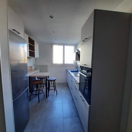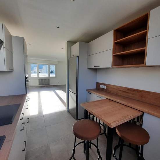 Close to all amenities and public transport, a beautiful fully renovated one-bedroom apartment (T2) located on the 3rd floor and comprising an entrance hall, a fitted and fully equipped kitchen, a large living room opening onto a balcony, a corridor with a fitted cupboard, a bedroom with a large closet, a shower room with storage, and a separate toilet. The apartment also includes a cellar and a private outdoor parking space. Heating and hot water are included in the charges. For any visit, please contact us to learn the procedures for submi...
