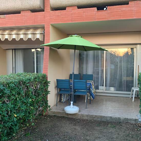 AVAILABLE ONLY UNTIL THE END OF JUNE 2026, charming furnished two-room garden-level apartment at Parc Vélusine in Antibes, residence with two swimming pools and tennis courts, terrace and private outdoor parking. Show phone number