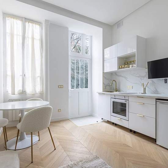 2 pièces refait à neuf avec gout, meublé, entièrement équipé. A noter que les charges comprennent l'électricité. Salon avec canapé-lit, coin nuit avec lit coffre 160cm et télé, cuisine équipée avec plaque de cuisson, réfrigérateur/congélateur, micro-onde, vaisselle et ustensiles de cuisine, linge de maison, salle d'eau et toilettes à l'étage en dessous, rangements, machine à laver.