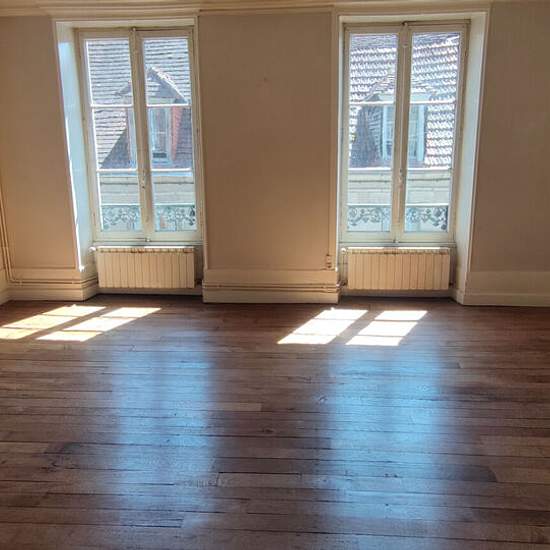 Un appartement F2 composé d'une entrée, une chambre, un salon, une cuisine, salle de bains, WC Chauffage gaz de ville
