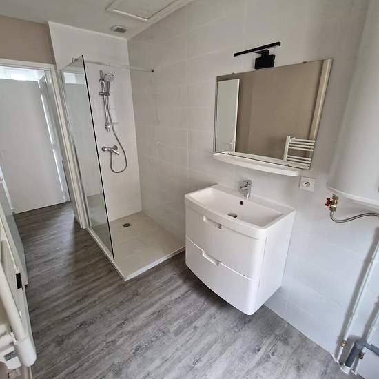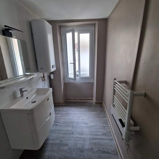 En coeur de la haute ville joli appartement Type 2 refait à neuf d'environ 51m² habitables. Salon séjour, cuisine semi-équipée, grande chambre, salle d'eau, wc indépendant. Petite cour commune. Petit cellier extérieur. Chauffage électrique nouvelles générations. Libre début mars.