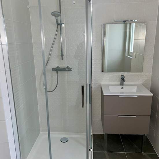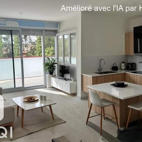 Appartement neuf au 2e étage d'une petite copropriété, loué meublé avec ascenseur, comprenant une cuisine équipée ouverte sur un salon-séjour, une salle de bains avec douche, wc séparés, une chambre, une grande terrasse et un emplacement parking privatif extérieur ... il n'y a que la télévision qui n'est pas fournie.....