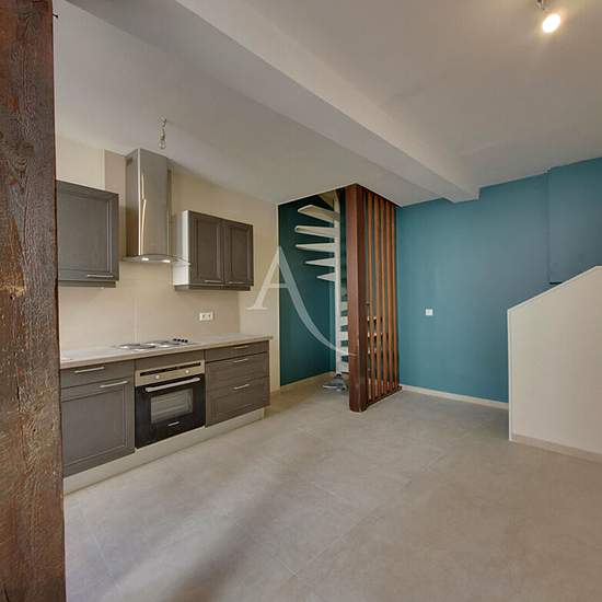 L'Agence Immobilière l'Adresse vous propose cet appartement situé au centre de Ville. Il comprend une pièce de vie avec une cuisine équipée et aménagée (plaque, four, hotte) donnant sur terrasse privative, au calme. A l'étage une chambre, une salle d'eau et toilettes. Disponible fin avril.