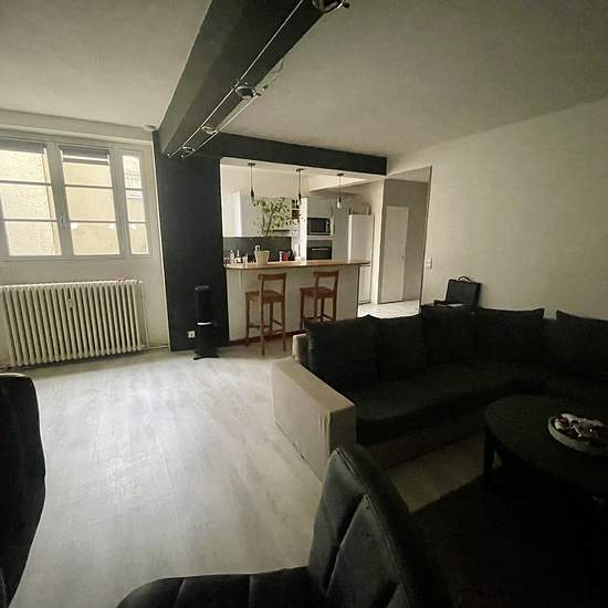 A louer appartement meublé deux pièces de 55 m2, idéalement situé aux portes du centre-ville, avec stationnement gratuit à proximité. Dans une petite copropriété sécurisée et au calme, le logement se compose ainsi : une entrée avec un placard fermé donnant sur la vaste pièce de vie avec cuisine ouverte équipée (four, lave-vaisselle, réfrigérateur, plaque de cuisson), une salle de douche avec WC, dans laquelle il est possible d'installer une machine à laver, une chambre spacieuse avec lit et placard/dressing. Loyer : 550 EUR hors charges + 16...