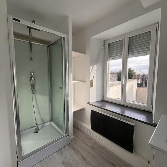 À louer, appartement comprenant salon / séjour avec cuisine ouverte, coin bureau, chambre, salle d'eau et wc. Loyer : 430 eur + 15 eur de charges (tom). Idéal personne seule ou couple. Disponible de suite.