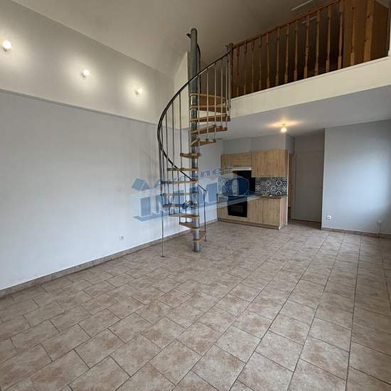 Maison-appartement. Secteur calme, en village : Maison-appartement offrant pièce de vie avec cuisine, salle d'eau, wc. A l'étage : une chambre en mezzanine. Cellier. Disponible de suite. Chauffage électrique. Loyer de 435EUR + 15EUR (taxe OM) soit 450EUR/mois.
