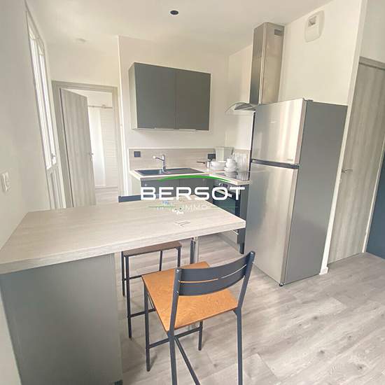 Bersot Immobilier vous propose à la location ce joli appartement T2 meublé de 34m² situé Avenue George Clemenceau comprenant une cuisine équipée (four, hotte, plaques de cuisson, frigo) ouverte sur séjour, une chambre avec lit double et grand placard aménagé, une salle de douche et un WC séparé. Chauffage individuel électrique. LIBRE LE 3/12/2025