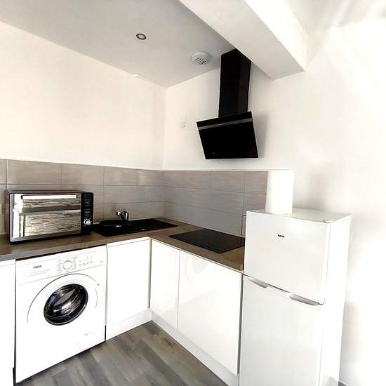 Le Cabinet mollevi vous propose cet appartement au deuxième etage de 35m2 entièrement rénové avec un grand salon séjour , une cuisine américaine entièrement équipée. Vous disposez, coté nuit d'une belle chambre avec rangement et d'une salle d'eau neuve. Proche de la mairiie et des anciennes arennes vous disposez de toutes les commodités et des commerces du centre ville. Places de parking au jean jaures à coté à 42 euros par mois disponibles honoraires d'agence 340 euros