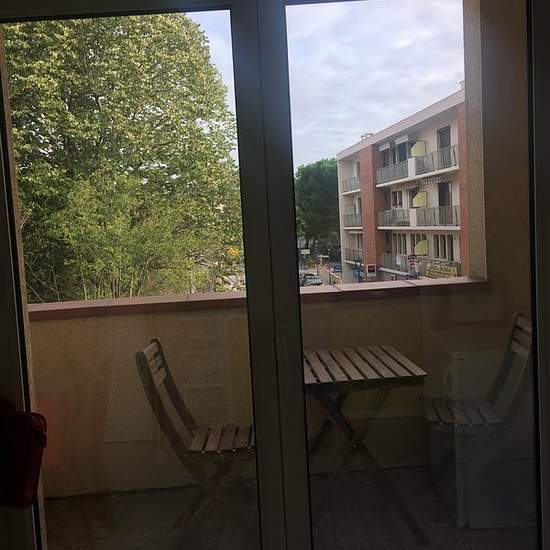 APPARTEMENT DUPLEX TYPE 2 au 2ème étage (sans asc) entièrement MEUBLE en hyper centre de Blagnac Comprenant : Entrée Séjour/Salon avec placard et coin cuisine équipée Loggia 3 m2 Etage : Grande chambre avec placard Salle de bains + toilettes Cave en sous-sol no Parking sous-sol no