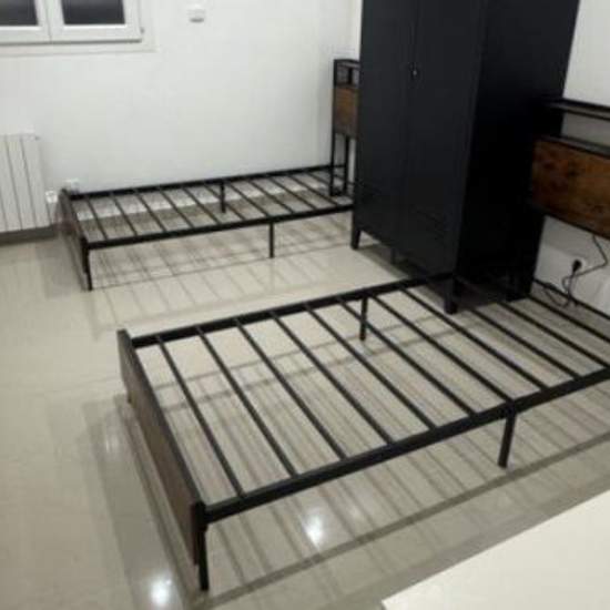 Étage 1: Salon, cuisine ouverte, wc. Contient canapé, table et 2 chaises, commode, frigo, plaque, lave linge, micro-ondes… Étage 2: Chambre à coucher, douche. Contient 2 lits indépendants transformables en grand lit, armoire, commode.
