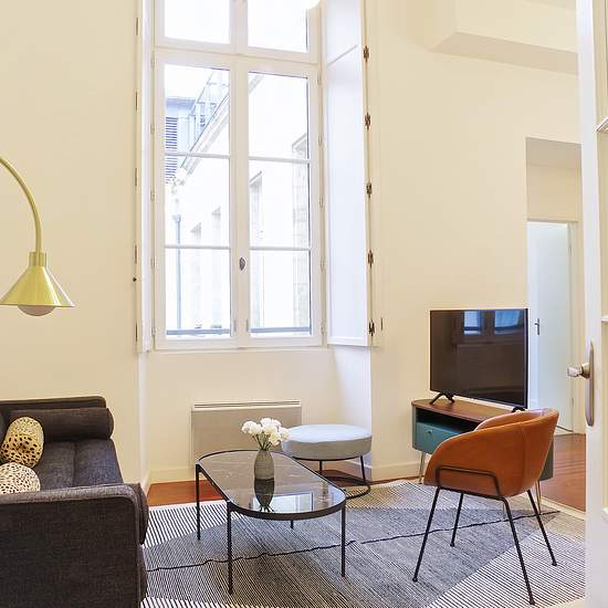 Découvrez le superbe appartement « Rue du Hâ » et ses 70m² de confort, en location meublée à Bordeaux, près de la place Pey Berland et sa majestueuse cathédrale. Ce bien se compose de : une entrée avec console et penderie, un salon avec un canapé, deux fauteuils, une table basse, une TV cablée, internet très haut débit/wifi, des étagères, un buffet et une table pour 6 personnes, une cuisine entièrement équipée avec une table bar pour 4 personnes, four, micro-ondes, lave-vaisselle, lave-linge séchant, réfrigérateur/congélateur, plaque de cu...