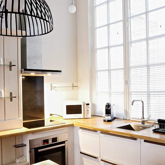 Bordeaux Autrement presents one of its clients' favorites in furnished rentals: the "Galeries" apartment. The apartment includes: - a living room with a sofa, two armchairs, a coffee table, a television, and internet/wifi, - a fully equipped open kitchen with a high table and 5 chairs, oven, microwave, dishwasher, refrigerator/freezer, cooking hob, kettle, Nespresso coffee machine, toaster, and all necessary cooking utensils, - a first bedroom with a double bed measuring 140 x 200 cm and a dresser, - a second bedroom with a double bed meas...