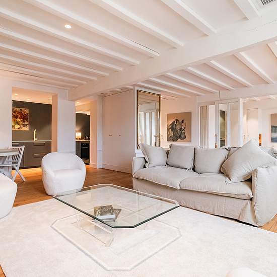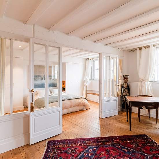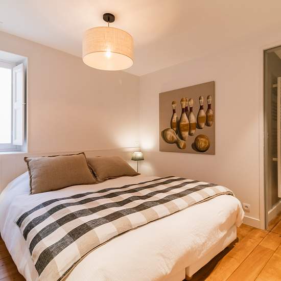 Bordeaux Autrement offers for rent this superb furnished apartment with 2 bedrooms, 2 bathrooms, in the hypercenter of Bordeaux, with an area of 80m². This T3 consists of: a living room with a sofa, 2 armchairs, a coffee table, a TV and internet/wifi, a desk and a beautiful bookshelf, a dining table for 6 people, an open kitchen fully equipped with an oven, microwave, dishwasher, refrigerator/freezer, induction hobs, kettle, Nespresso coffee machine, toaster and all the necessary cooking utensils, a 1st bedroom with a double bed of 160x200...