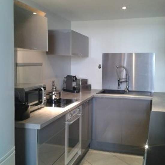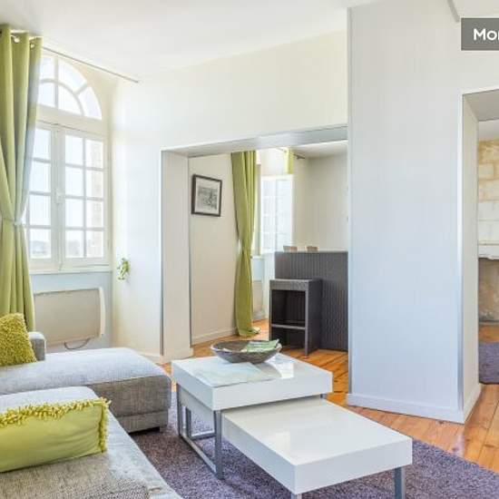 Located at Porte de Bourgogne, at the bottom of Cours Victor Hugo, in the Saint-Michel area, a popular, multi-ethnic district in the historic centre of Paris. Loft-style apartment, not overlooked, with a view over the Garonne (Pont de Pierre), with a surface area of 60 m² + 30 m² of attic space. It comprises a fully equipped open-plan kitchen (induction hob, oven, microwave, washer/dryer, fridge/freezer, dishwasher, countertop, coffee machine, kettle, toaster), a large, comfortable living room of 40 m² (corner sofa, high table, coffee table,...