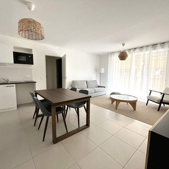 À louer !T2 meublé avec balcon et parking !Rive droite Bordeaux Un appartement T2 entièrement meublé est disponible à la location dans une résidence neuve, située sur la rive droite de Bordeaux, entre le Pont de Pierre et le Pont Saint-Jean. Ce logement se trouve au rez-de-chaussée et bénéficie d'un emplacement privilégié, à proximité immédiate des arrêts de bus desservis par les lignes 16, 25, 28 et 30. L'appartement se compose d'une entrée, d'un séjour lumineux avec une cuisine ouverte équipée(meubles hauts et bas, évier inox , hotte, plaq...