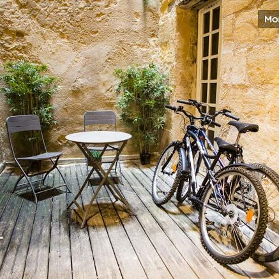 Welcome to our home, and take advantage of a very quiet street in the centre of Bordeaux, close to the quays. The flat, on the ground floor, is fully equipped and has a 9m² patio and 2 bicycles available. It was completely refurbished in September 2019. No shared accommodation available. Services included in rent & charges: Water Electricity Heating Internet The security deposit of 1500 € must be paid, before the keys are handed over, by bank transfer.