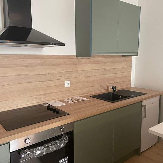 Location exclusive - Bdx Pey Berland, au 5 rue Verteuil 33000 Bordeaux, adorable appartement type 2 refait à neuf en 2025 au 1er étage d'un immeuble pierre. Surface de 31 m² composé d'un séjour sui donne sur petit espace cour (commun avec possibilité de délimitation de 5 m2 pour usage personnel), jolie cuisine derrière comptoir avec meubles hauts et bas (évier, hotte, four, comptoir, frigo et espace machine à laver), chambre parquet stratifié, salle d'eau et WC séparés. Calme absolu. Place de parking sécurisée au RDC de l'immeuble. Libre . e...