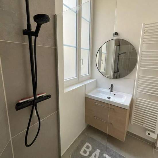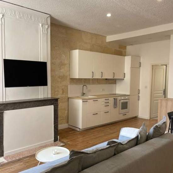 Appartement de 44 m² à louer sur Bordeaux Appartement situé au cœur du Bordeaux historique rue Sainte Catherine. Il est situé entièrement sur cour et donc très calme. Appartement bénéficiant de beaucoup de cachet avec murs en pierre, parquet et cheminée. L'appartement est tout équipé et comprend un grand salon avec canapé convertible, télé écran plat, cuisine ouverte toute équipée (lave-vaisselle, four, réfrigérateur / congélateur, lave-linge / sèche-linge) ainsi qu'une chambre séparée avec un grand lit double queen size (160 cm) et une sall...