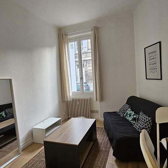 Le Cabinet de la Course, vous propose dans un bel immeuble en pierre, rue Turenne, proche de la rue Paulin, un T1 bis de 26 m² entièrement rénové, meublé et exposé sud. Situé au rez de chaussée, il se compose d'un séjour comprenant un coin cuisine équipé réfrigérateur top, plaque 2 feux vitro-céramique, hotte aspirante, lave linge et four, d'une chambre avec dressing et d'une salle d'eau avec WC. Il est entièrement équipée et il est loué avec une cave privative. Chaudière gaz à condensation collective, production d'eau chaude par chauffe eau...