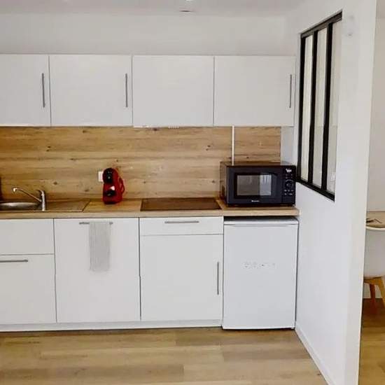 Appartement de 35 m² à louer sur Bouguenais Découvrez ce charmant T2 de 35 m², entièrement rénové et idéalement situé à Bouguenais Les Couëts, à proximité de la station de tram Grande Ouche. Cet appartement bénéficie d'un emplacement privilégié avec un accès rapide à toutes les commodités : commerces, transports, et accès direct au périphérique sortie 50. Vous rejoignez le centre-ville de Nantes en 15 minutes seulement. Cuisine : La cuisine spacieuse et ouverte est équipée d'une plaque à induction 3 feux, d'une hotte, d'un four micro-ondes m...