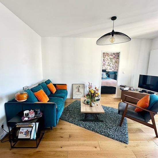 Appartement de 43 m² à louer sur Boulogne-Billancourt Je propose à la location un très bel appartement 2 pièces de 43 m² entièrement refait à neuf avec des matériaux de qualité. L'appartement se compose d'une entrée avec un grand placard à manteaux, d'un salon de 22 m² avec baie vitrée et donnant sur un magnifique balcon de plus de 7m linéaire. Assez large il permet d'y disposer une table et des chaises (déjà présents), exposé Sud-Ouest et sur une rue calme à sens unique. La cuisine est ouverte sur le salon, entièrement équipée et munie de n...