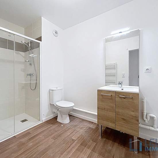 Bourg achard - secteur mairie dans une résidence neuve avec ascenseur, un appartement f2 comprenant : un séjour avec balcon et rangement, espace cuisine aménagée (meubles hauts et bas, emplacement plaque, hotte, évier et 2 branchements machine), chambre, salle d'eau (douche, meuble vasque et wc). Chauffage et eau chaude individuel gaz - eau froide individuelle. Interphone. L'appartement dispose également d'une place de stationnement couverte. * assurance habitation à 11.46 euros / mois.