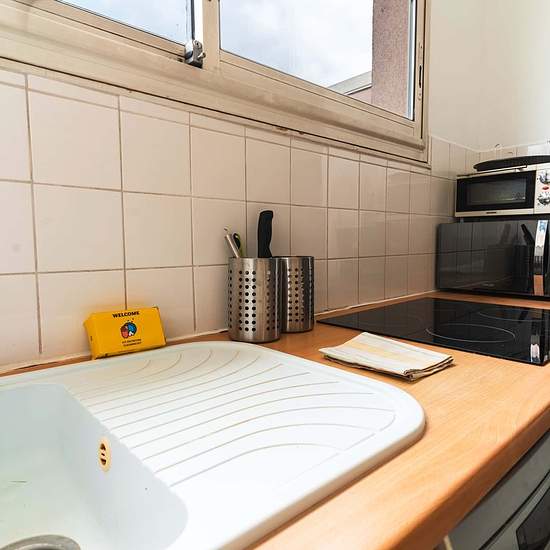 ## Espace C'est un appartement de 65 m2 bien meublé avec un grand séjour, 2 jolies chambres avec espace et dressings, une cuisine séparée, une terrasse et une place de parking. Nous fournissons des serviettes propres, des draps. Il dispose d'une connexion Wi-Fi gratuite et d'une télévision HD avec chaînes câblées internationales. La cuisine dispose de tous les équipements modernes avec réfrigérateur, plaques de cuisson, micro-ondes/grill et cafetière. Douche et toilettes. Gel corporel et shampoing seront à votre disposition. Il y a un sèche-...