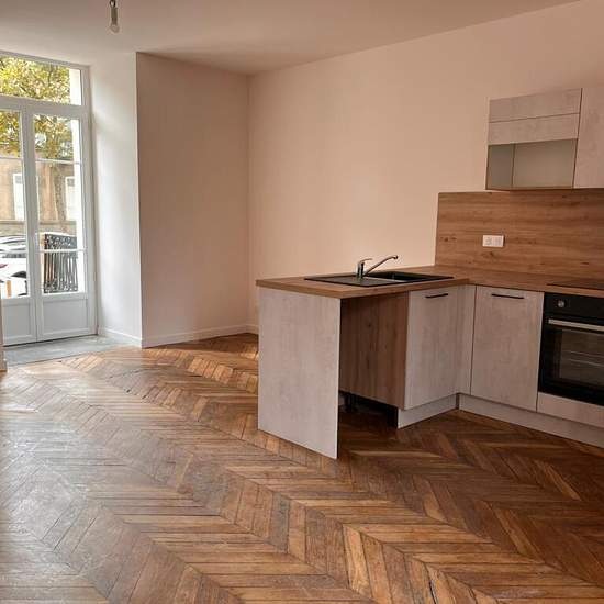 NOUVEAU A LA LOCATION: T2 de 47 m2: Au centre de Brioude dans un immeuble refait à neuf avec des matériaux de qualité alliant à la fois charme de l'ancien et modernité. Disposant d'un ascenseur. Au RDC: T2 de 47m2 comprenant : Un séjour, une cuisine ouverte sur le séjour une suite parentale avec salle d'eau, un WC indépendant. La cuisine est améagée, équipée. Chauffage électrique, fenêtre double vitrage. Cet appartement traversant est très lumineux. L'appartement dispose d'une belle terrasse à usage privatif accessible par le salon ou la cha...