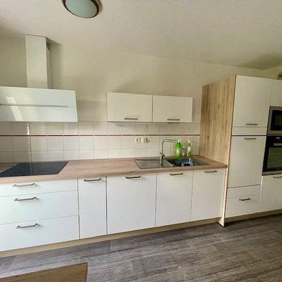 Bruguieres centre village. Dans petite copropriété, en rez de chaussée, bel appartement t2 de 69.76 m² + garage de 14.80 m². L'entrée avec rangement dessert un séjour avec terrasse, une cuisine avec coin repas entièrement équipée en mobilier + plaque de cuisson, hotte, four, lave-vaisselle, refrigérateur / congélateur; accès terrasse et jardin; une chambre avec rangement, une salle d'eau, un wc. Le garage est attenant et communique avec l'appartement. Chauffage électrique + clim dans le séjour. L' ensemble est en tres bon etat. Calme- dpe d ...
