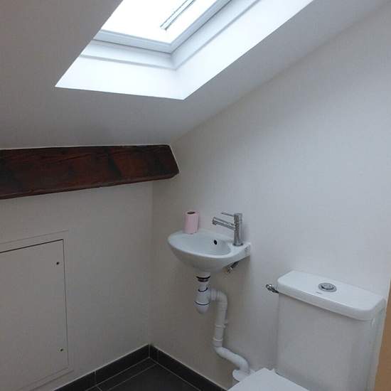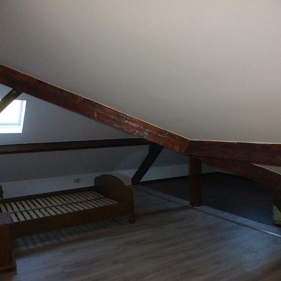 Appartement en duplex offrant au rez de chaussée une entrée avec placards, un séjour et cuisine ouverte, salle d'eau avec wc et dans les combles une grande chambre et deux espaces et un wc. Loyer charges comprises y compris internet!