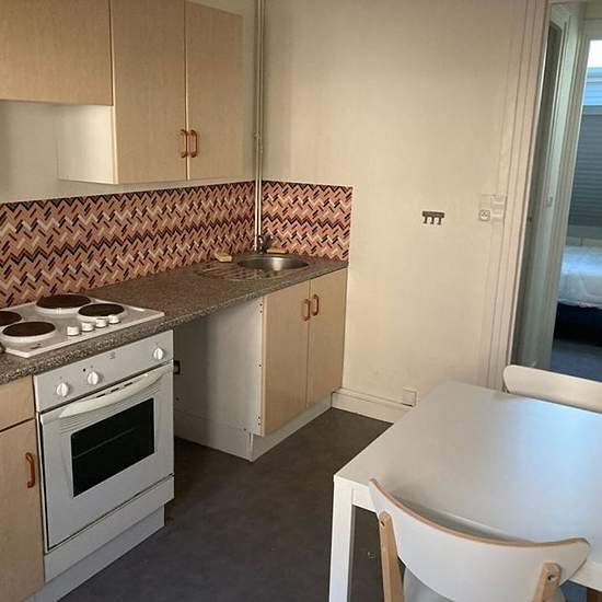 Two-room furnished apartment on the 4th floor without elevator comprising: an entrance hall, a fitted and equipped kitchen, a living room, a bedroom, a shower room with WC, individual electric heating. Available. Rent: €608 + charges: €40. Agency fees: €403. Information on the risks to which this property is exposed is available on the website: .