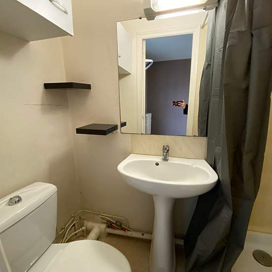 Petit F2 de 21,5 m² situé à Caen, 25 rue Saint-Anne, dans le quartier Saint-Gilles. Il se compose d'une chambre, d'un petit séjour avec kitchenette (plaques électriques et réfrigérateur) ainsi que d'une salle d'eau avec WC. Charges : 111 euros / mois (tout inclus) + 6 euros de TEOM.