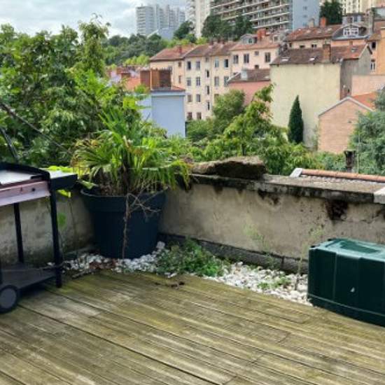 Appartement de 46m2 avec belle terrasse de 30 m2 avec vue dégagée Situé à Caluire, juste à la limite de la croix rousse Accès hôpital croix rousse 10 mn à pied, grande place croix rousse 15 mn à pied