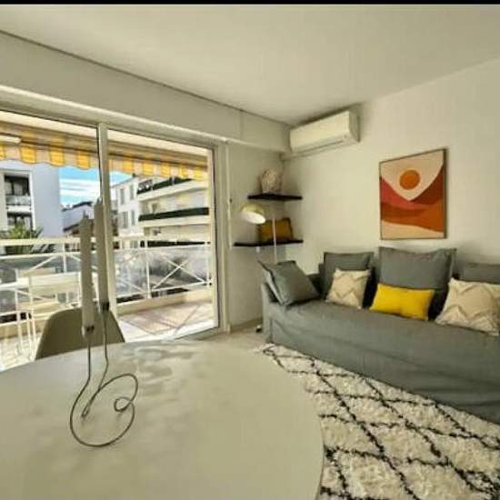 Deux pièces au deuxième étage d'une résidence située proche du centre de Cannes à 5 minutes à pied de la rue d'Antibes, supermarché à proximité et piscine Montfleury à 2 pas. Cet appartement dispose d'un séjour salle à manger avec un canapé convertible deux places, d'une chambre double, d'une pièce avec un lit simple et d'une terrasse.