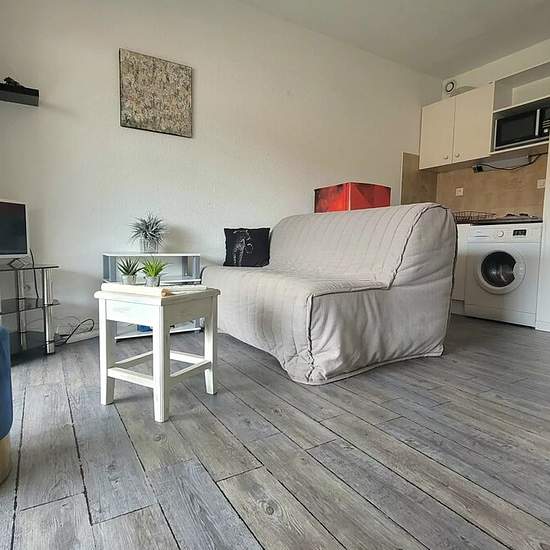 Location MEUBLÉE un 2 pièces de 28 m² avec une grande terrasse qui se situe rue du châtaignier, quartier du petit juas. Dans une résidence sécurisée avec gardien, l'appartement se trouve au 4ème étage avec ascenseur. Ce 2 pièces exposé plein SUD est composé d'une entrée, un séjour, une cuisine ouverte et équipée (micro-onde, plaque de cuisson, réfrigérateur, cafetière, machine à laver), une chambre avec un lit double, une terrasse allant de la chambre jusqu'au séjour, une salle de douche, un w.c individuel. Loyer H.C : 723.39€ Charges : 80 €...