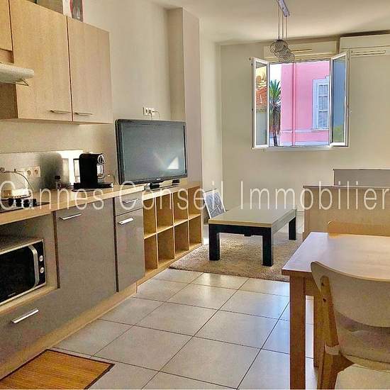 Cannes, Quartier Stanislas, très agréable F1 meublé de 35 m² aménagé en 2 P. Il se compose d'une pièce principale très lumineuse, une cuisine américaine équipée, une chambre avec salle de douche en suite et un wc individuel. Décoration moderne, double vitrage, climatisation, volets électriques. Machine à laver commune avec les 2 autres appartements au même étage. Loyer hors charges : 703€ Charges : 15€ (comprenant l'eau froide) Taxe ordures ménagères : 12€ Loyer charges comprises : 730€ Dépôt de garantie : 1406€ Honoraires locataires : 488.2...