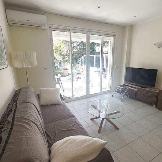 In the very heart of Palm Beach Les Hespérides, a charming furnished garden-level T2 (one-bedroom) apartment with two entrances — a small gate or the residence entrance — and a west-facing garden, bright and leafy. Close to the shops and restaurants at Place de l'Étang and very near the beach; worth a visit. Information on the risks to which this property is exposed is available on the Géorisques website: Show phone number