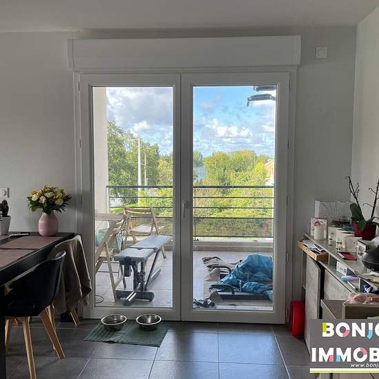 Canne Ecluse - 74 rue des Bordes - Au premier étage avec ascenseur, d'un petit immeuble récent (Construit en 2019), T2 de 54,48m2 composé de : Un séjour de 29m2 ouvert sur une cuisine toute équipée et donnant sur une terrasse de 20m2, une chambre de 10m2, une salle d'eau et un WC séparé. Chauffage individuel au gaz par radiateurs, eau froide individuelle. Menuiserie PVC double vitrage. Une place de stationnement au pied de l'immeuble. Un garage loué avec l'appartement au loyer d'un montant de 55 euros/mois. L'appartement est non meublé et di...