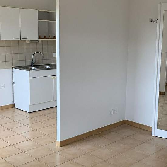 2-room apartment - For rent. A two-room apartment on the 3rd floor with elevator, comprising an entrance, a living room open to the kitchen that opens onto a terrace with an unobstructed view, a corridor, a bathroom, a separate toilet, a bedroom with a balcony, and an underground parking space.
