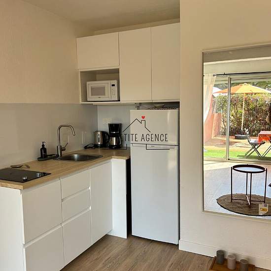Appartement T1/T2 meublé d'une surface habitable de 21,11 m², comprenant un séjour avec cuisine équipée, une chambre, et une salle d'eau avec WC. Vous bénéficierez également d'une loggia fermée de 6 m² attenante à la partie privative et d'une terrasse plein sud de 25 m². Situé à 1 minute à pied de la plage du Cap Rousset et à 10 minutes à pied du centre-ville et des commerces, cet appartement lumineux et fonctionnel est idéal pour profiter du cadre et du confort. Une place de parking privative est incluse, et un parking gratuit se trouve à p...