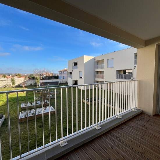 CASTANET-TOLOSAN on the border of AUZEVILLE-TOLOSANE This recent development offers a pleasant one-bedroom (T2) apartment located on the first floor. It comprises a living room with equipped kitchen (upper and lower units, a sink, 2-burner ceramic hob, an extractor hood), a bedroom with a dressing area, a shower room with a toilet and a 5.94 m² balcony. It includes an underground parking space.