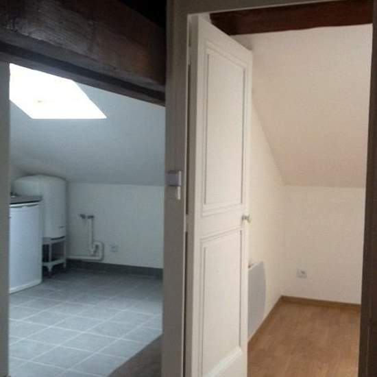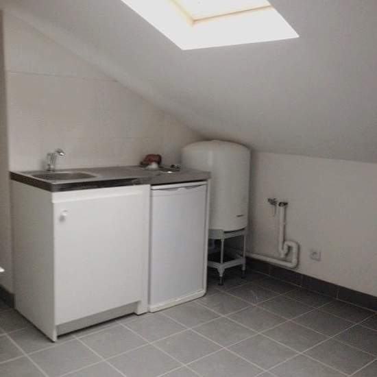 REF 59.7 - Mansard F2 (one-bedroom) - 3 and 5 Place Ludovic Monnier in the heart of Champagne-au-Mont-d'Or. Close to Lyon, nice 45 m² (usable area) and 30 m² (living area) through-facing apartment, on the 3rd and top floor. Overlooking a small village square, near the town hall. Small entrance hall opening onto a kitchenette (fridge, hob), shower room, 1 bedroom, spacious and bright living room, closet, skylight(s) and wood paneling. Electric heating and hot water by storage tank. RENT €555 + €20 charges. Fees €300. Inventory (EDL) €130.80. ...