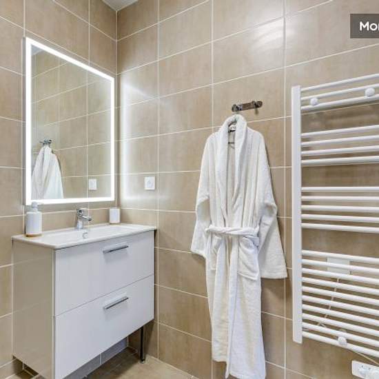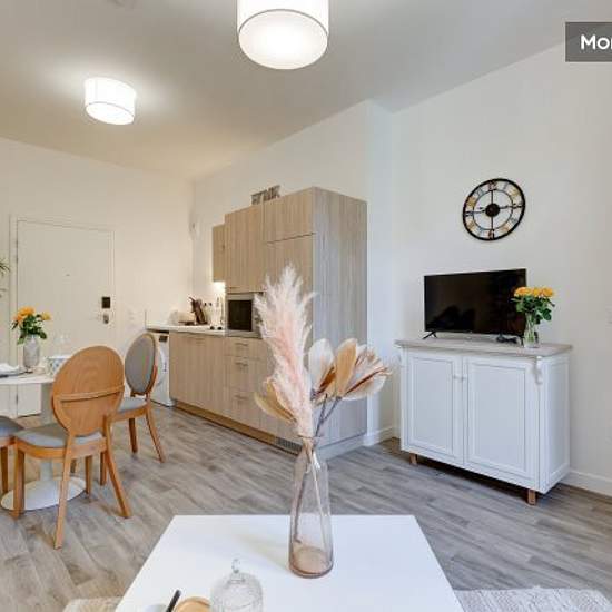 This absolutely exceptional 45m² flat, recently renovated and decorated with refinement, is located on the 1st floor of an extremely quiet and secure residence. The flat is very bright. It sleeps two people and includes a fully equipped kitchenette (fridge, microwave, electric hob, coffee maker, kettle, crockery and cooking utensils), a beautiful bathroom with walk-in shower and a flat-screen TV. Services included in rent & charges: Water Electricity Heating Internet Parking The security deposit of 800 € must be paid, before the keys are ...
