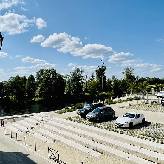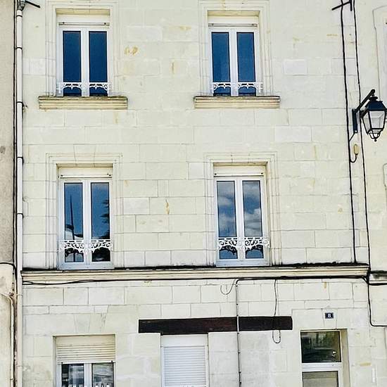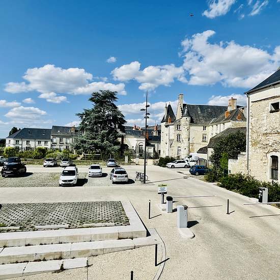 Appartement T2 avec vue agréable sur la Vienne et le Château des Histoires, comprenant : une cuisine séparée aménagée et équipée, un salon/séjour, une chambre, une salle de bain avec WC, un WC individuel. Chauffage individuel électrique. Digicode.