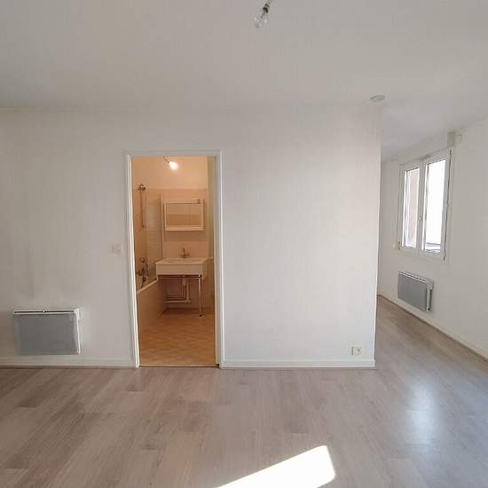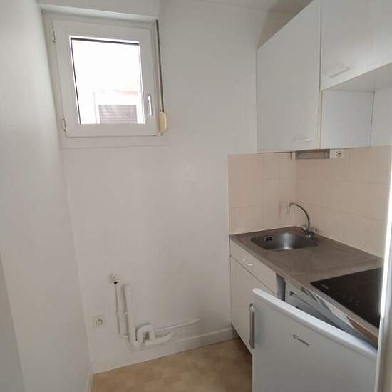 Environnement calme et verdoyant pour ce mini t2 situé en plein centre et comprenant un séjour avec coin chambre donnant sur une terrasse, kitchenette équipée, logement à consommation énergétique excessive classe f, 470€hc.